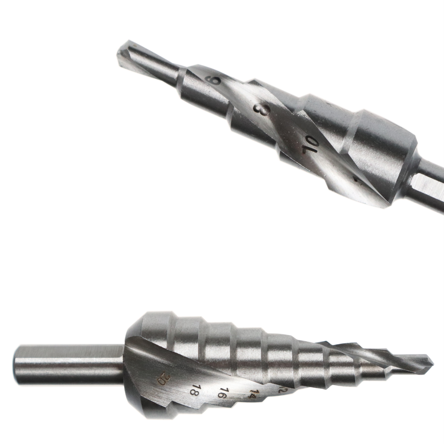 - 🔎 VORTEIL IM DETAIL | Unsere HSS Stufenbohrer haben einen Drall für lange Standzeit & verbesserte Spanabfuhr. Durch Sechskant passend für jeden Akkuschrauber, Bohrmaschinen usw...