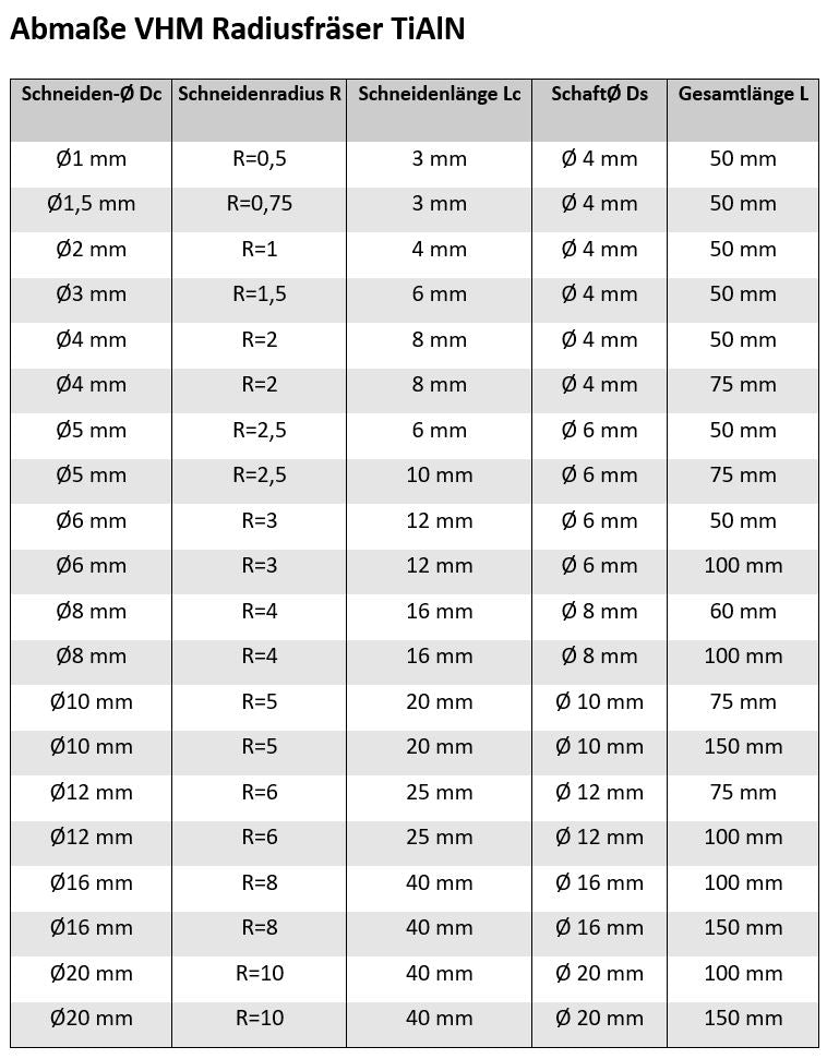 VHM Radiusfräser Kugelfräser