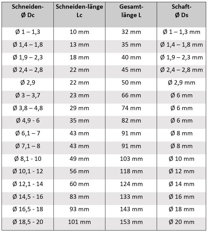 VHM Bohrer ohne Innenkühlung