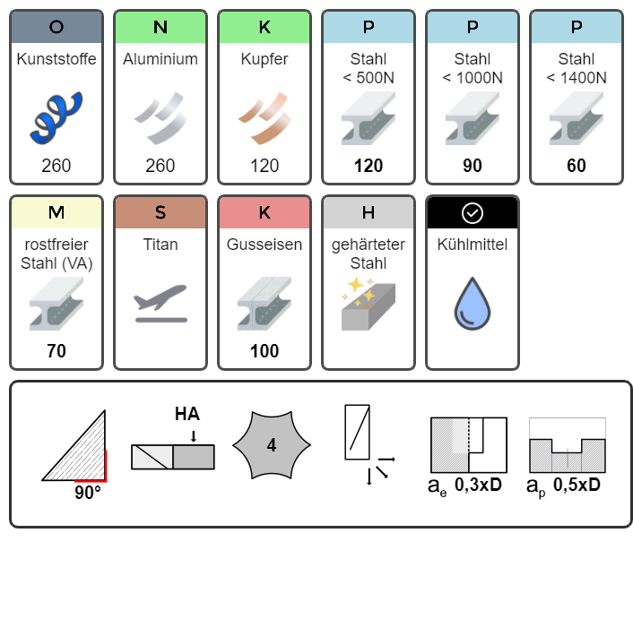 - VHM-Fräser mit freigesetzter Schneide für tiefere Bearbeitungen