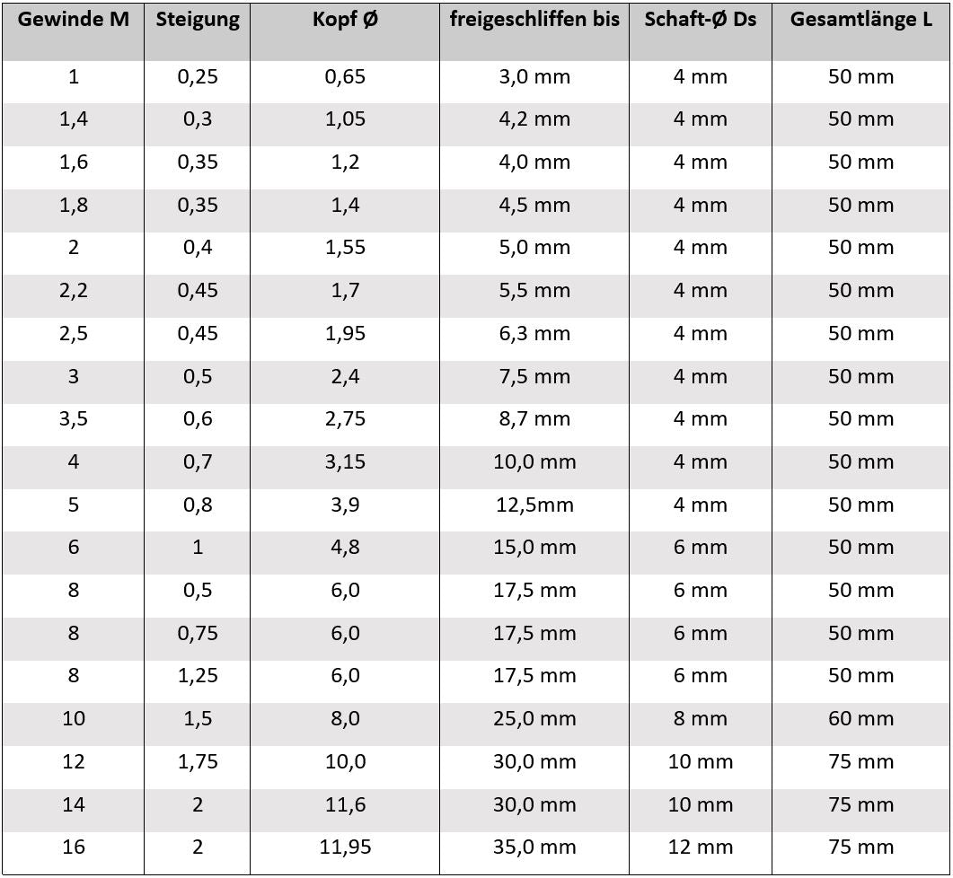 - all thread milling cutters are also suitable for larger threads (e.g. the M3x0.5 can also be used for M8x0.5 as long as the pitch remains the same)