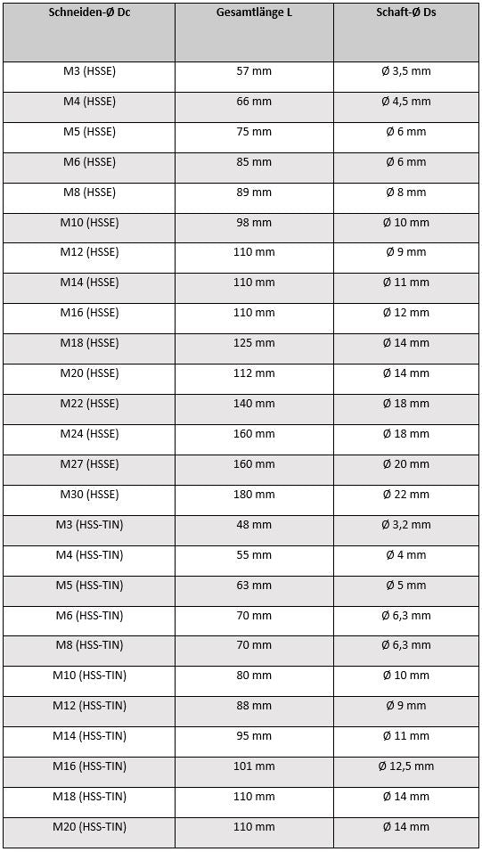 Schauen Sie auch in unseren Shop, hier ist auch ein Gewindeschneider Set erhältlich.